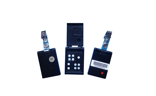 剂量计内部设有四个槽,可放置不同形状、规格的热释光探测器。配置不同的探测器可用于X、γ、β射线和中子线剂量的测量。剂量计配戴采用吊卡结构,剂量计采用不干胶条形码编号。